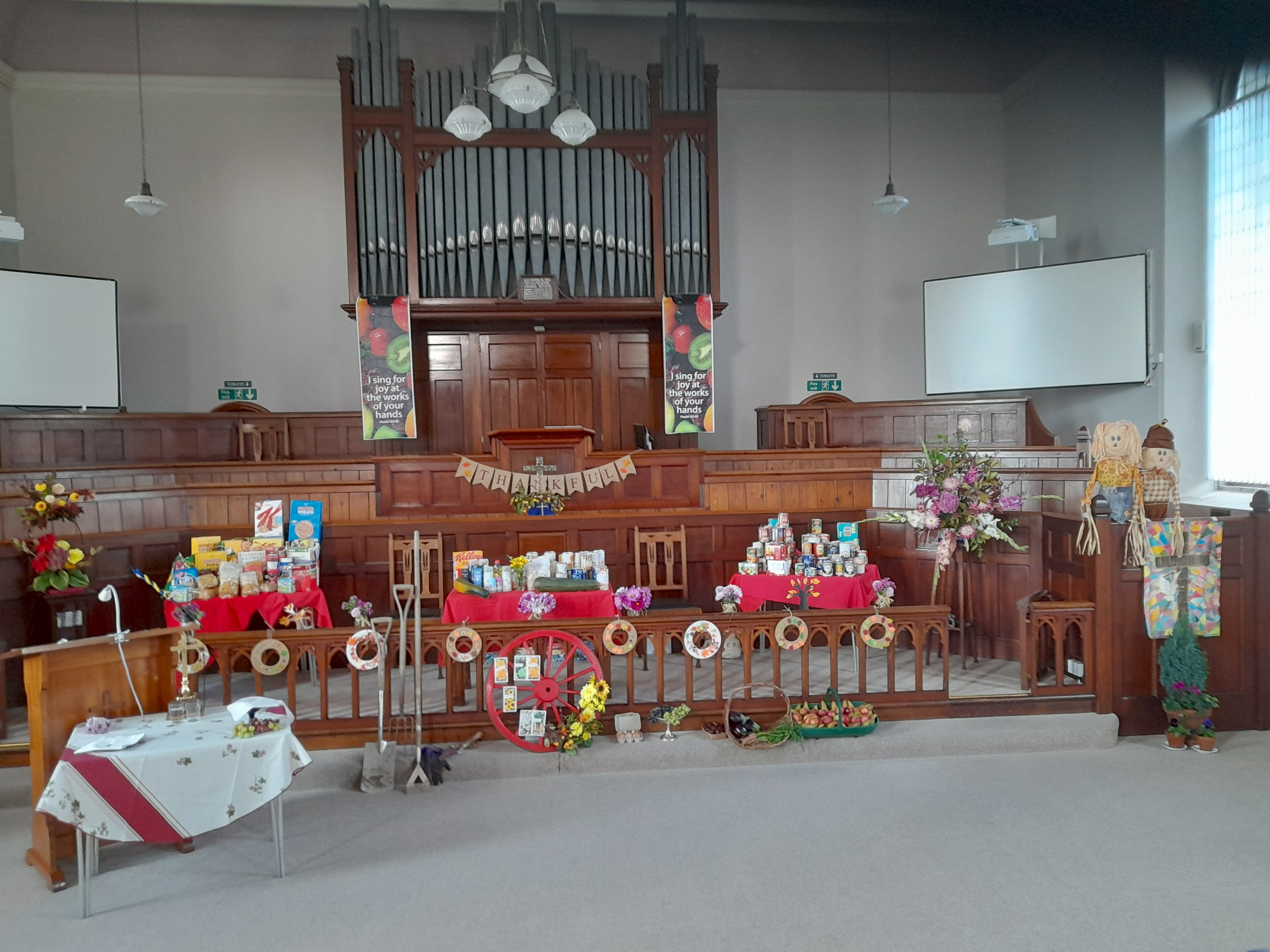 The Harvest rings hanging from the communion rail were the craft made by those who attended our Generations session on Friday 4th.